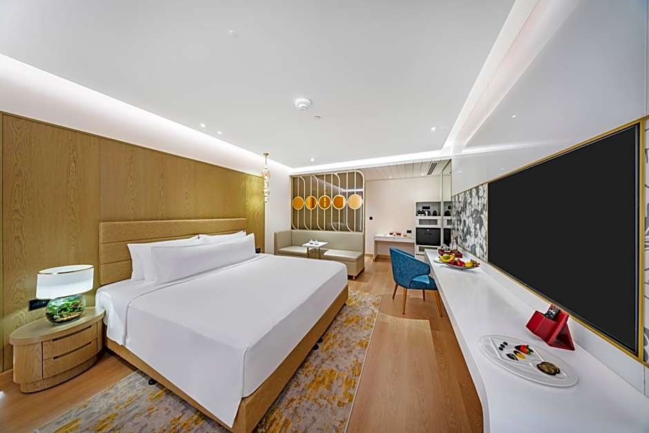 This suite provides a hot tub. This spacious suite consists of 1 bedroom, a seating area and 1 bathroom with a walk-in shower and a bath. This suite features air conditioning, soundproof walls, flat-screen TV with streaming services, as well as chocolate for guests. The unit offers 1 bed.